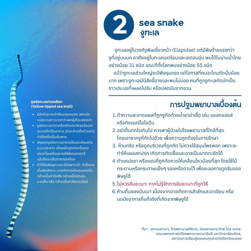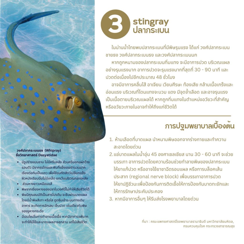 ทะเลไทย เป็นหนึ่งในแหล่งทรัพยากรธรรมชาติที่อุดมสมบูรณ์และมีความหลากหลายทางชีวภาพมากที่สุดในภูมิภาคเอเชียตะวันออกเฉียงใต้ ไม่เพียงเป็นแหล่งประมงและการท่องเที่ยวที่สำคัญ ยังเป็นห้องเรียนธรรมชาติที่มนุษย์สามารถเข้าไปเรียนรู้ สัมผัส และชื่นชมความมหัศจรรย์ของสิ่งมีชีวิตนานาชนิดได้อย่างใกล้ชิด อย่างไรก็ตาม ท่ามกลางความสวยงามของโลกใต้ทะเลยังแฝงไปด้วยอันตรายที่ไม่อาจมองข้าม โดยเฉพาะจาก “สัตว์ทะเลมีพิษ” ที่สามารถก่อให้เกิดอุบัติเหตุร้ายแรงต่อผู้ที่มีปฏิสัมพันธ์กับพวกมัน ไม่ว่าจะเป็นนักดำน้ำ นักท่องเที่ยว ชาวประมงพื้นบ้าน หรือแม้แต่ผู้บริโภคอาหารทะเล