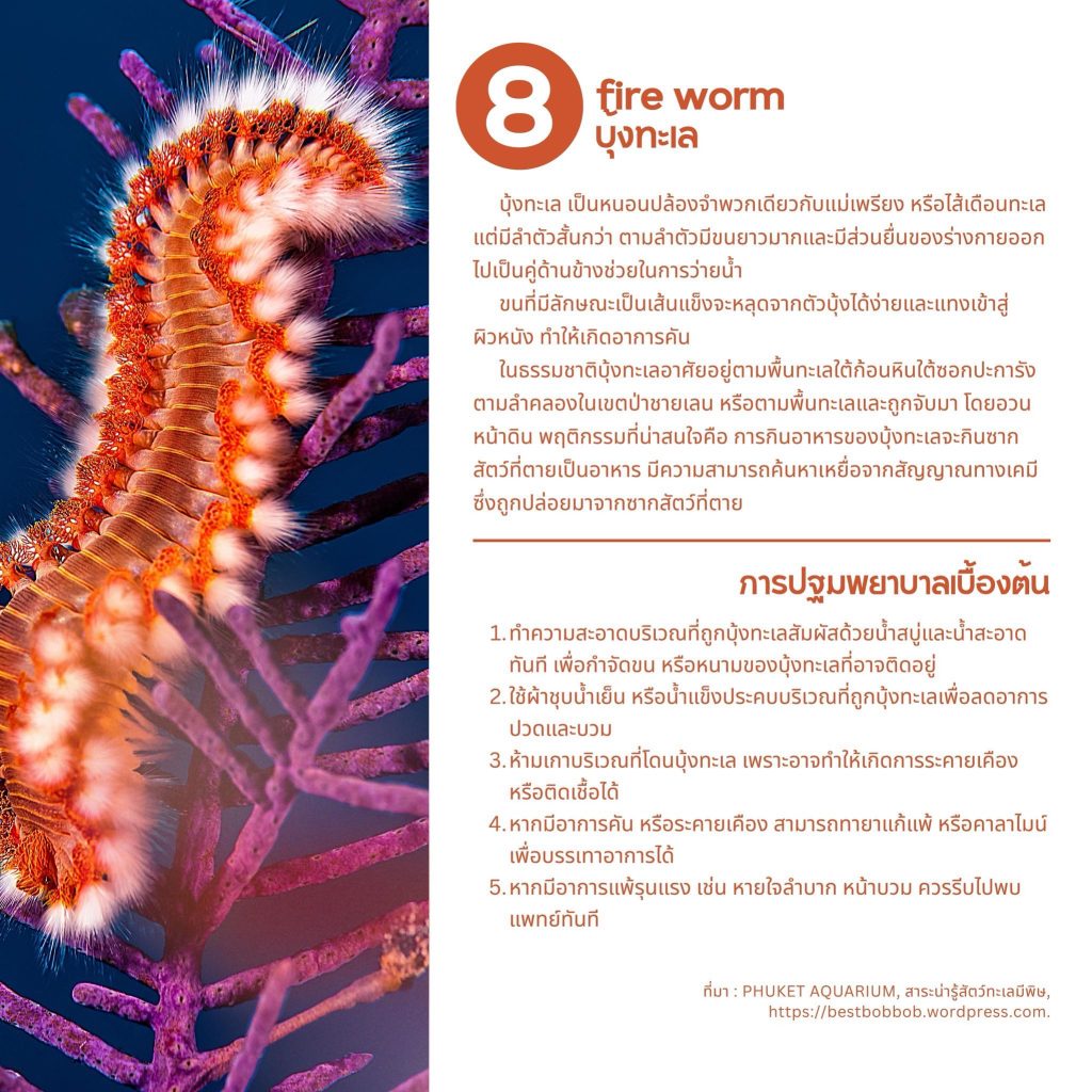 การสัมผัสกับสัตว์ทะเลมีพิษ แม้ในบางครั้งอาจเป็นเพียงเหตุบังเอิญ หรือจากความไม่รู้ แต่ผลที่ตามมาอาจรุนแรงถึงขั้นเสียชีวิต เนื่องจากสัตว์เหล่านี้ มีระบบป้องกันตัวตามธรรมชาติที่สามารถปล่อยพิษหรือก่อให้เกิดอาการเจ็บปวดและแพ้พิษในระดับต่าง ๆ