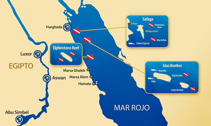 Day 3-6: We normally plan to spend a day each at Brothers, Daedalus, and the Elphinstone area. Normally, you will have the opportunity to make three dives per day (night dives are not permitted in the marine parks). A typical diving day is scheduled as follows: