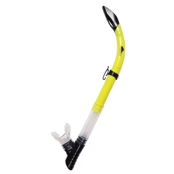 - Flexible, corrugated joint drops snorkel from face when not in use.